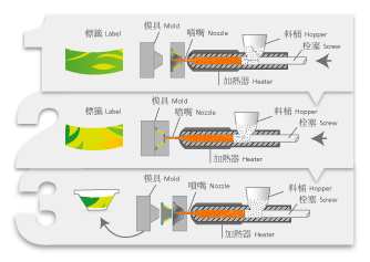 模內標籤加工流程 Manufacturing Process of In Mold Label (IML) |